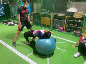 チームレッスンでは、他の仲間たちと切磋琢磨しながら、守備やバッティングの基本動作も学びました。体幹・ファンクショナルトレーニングでは、競技力アップのための体づくりをサポートしてもらい、ソフトボール以外のスポーツにも応用できるトレーニングを受けました。